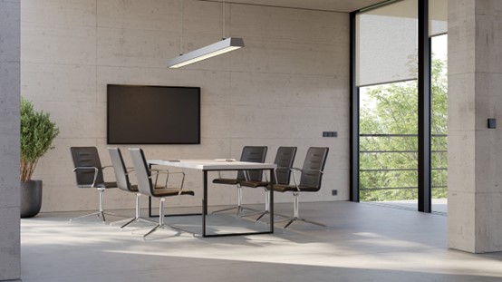 Atreo meeting table can be single or multiple. In both cases it is available with either A-shape or straight legs. The essential lines allow you to play with top and leg combinations to make furniture