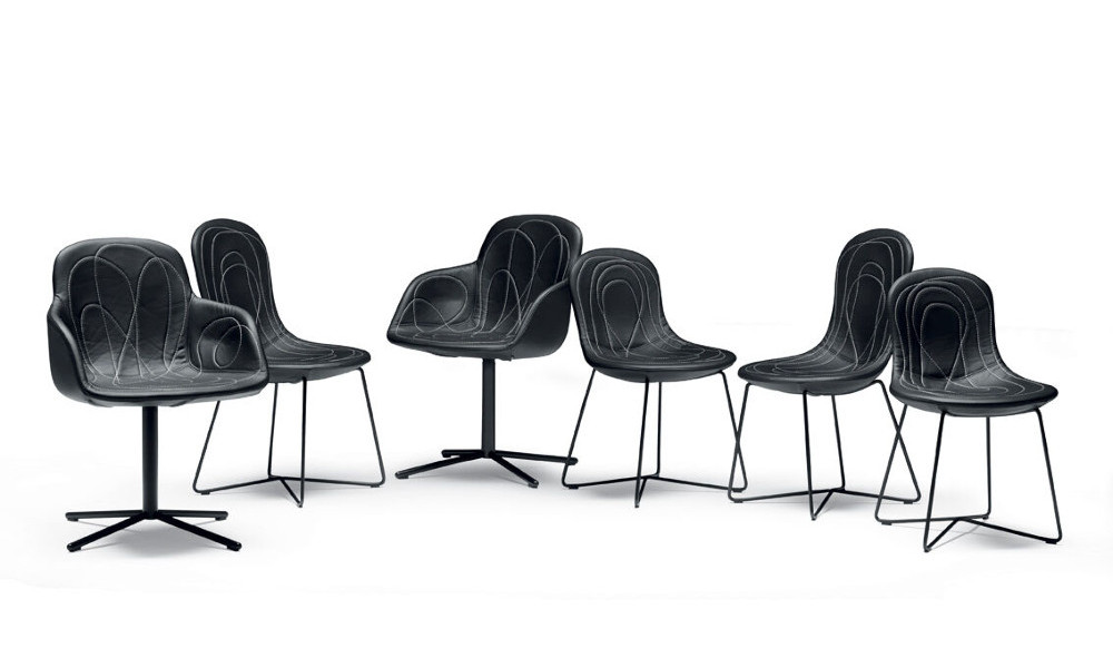 Doodle: αυτά τα σχέδια που ζωγραφίζουμε ενώ μιλάμε στο τηλέφωνο ή όταν έχουμε το μυαλό μας σε άλλα πράγματα. Γραμμές, σπείρες και δίνες που είναι πάντα διαφορετικές, είναι η έμπνευση πίσω από τη σχεδιαστική ιδέα αυτής της συλλογής καθισμάτων. Οι ορατές σπειροειδείς γραμμές της πολυθρόνας Doodle, ραμμένες πάνω σε ύφασμα ή σε δέρμα σε αντίθετα ή ταιριαστά χρώματα, δημιουργούν διάφορες επιλογές καθισμάτων και ολοκληρώνουν μια οικογένεια κατάλληλη για όλους τους χώρους όπου η άνεση και η διασκέδαση απαιτούνται: από ξενοδοχεία και γραφεία μέχρι και σπίτια. Σήμερα η συλλογή αποκτά και ένα νέο στοιχείο: το ψηλό σκαμπό, διαθέσιμο σε πολλά χρώματα, και ραφές σε αντίθετες αποχρώσεις. Η μεταλλική βάση είναι διαθέσιμη σε βαμμένο λευκό, μαύρο ή καφέ, ή σατέν φινίρισμα χρωμίου.