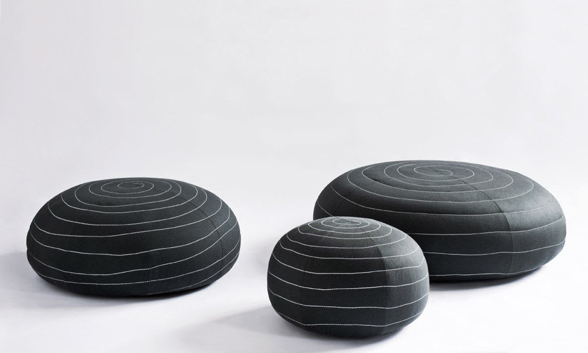 Το Spin είναι μια οικογένεια από πουφ, που συνεχίζει μια τεχνική όπως οι “τυχαίες” ραφές, που ήδη εφαρμόζεται στην καρέκλα Doodle των σχεδιαστών Claesson Koivisto Rune, που εμφανίζει απαλές και παιχνιδιάρικες δίνες με ένα σχεδόν υπνωτικό αποτέλεσμα. Οι ραφές χαρακτηρίζουν τα γενναιόδωρα, στρογγυλά σχήματα αυτών των μαλακών επίπλων, διαθέσιμων σε διαφορετικά μεγέθη και σχήματα.